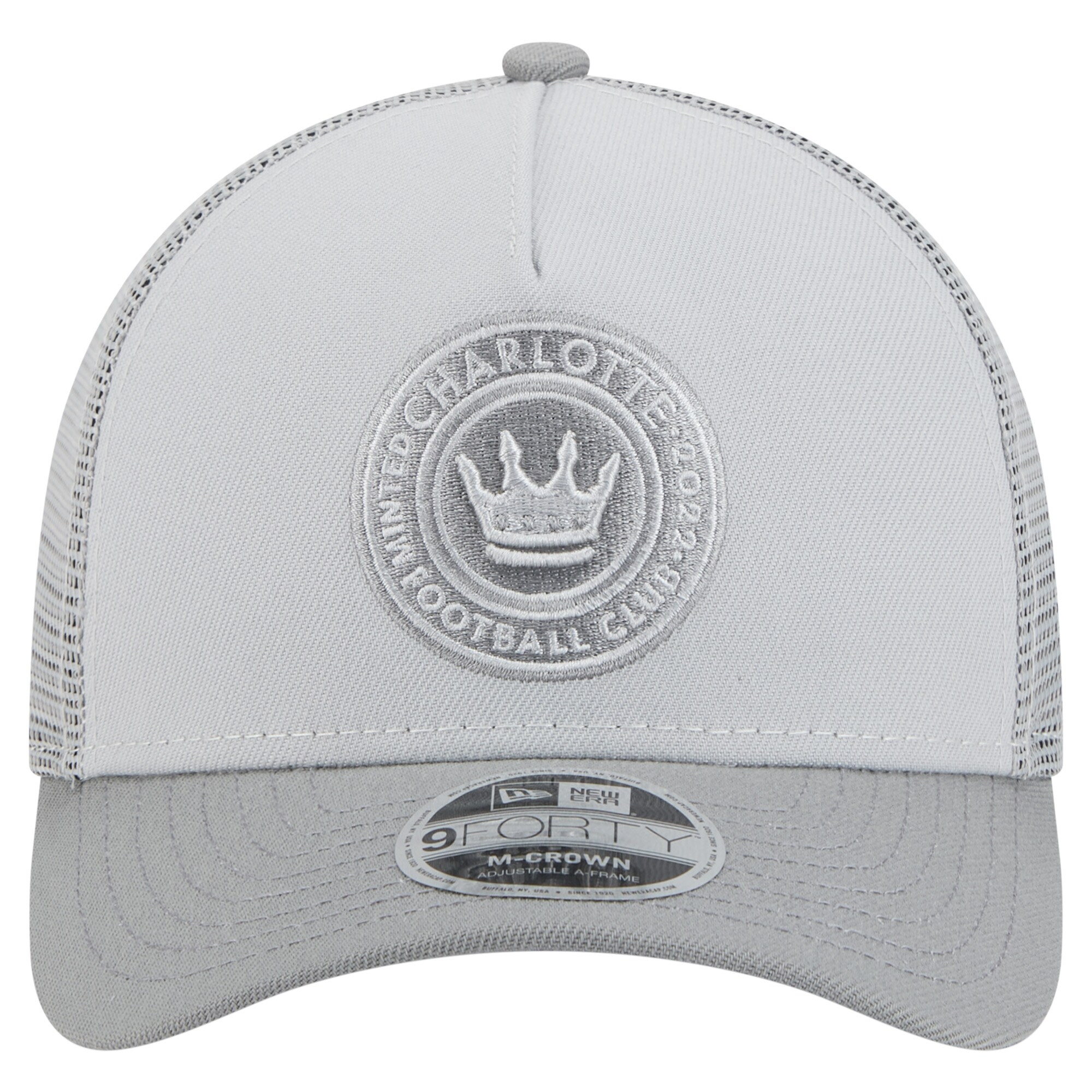 Men’s Charlotte FC New Era Gray Established Patch 9FORTY A-Frame Trucker Adjustable Hat
