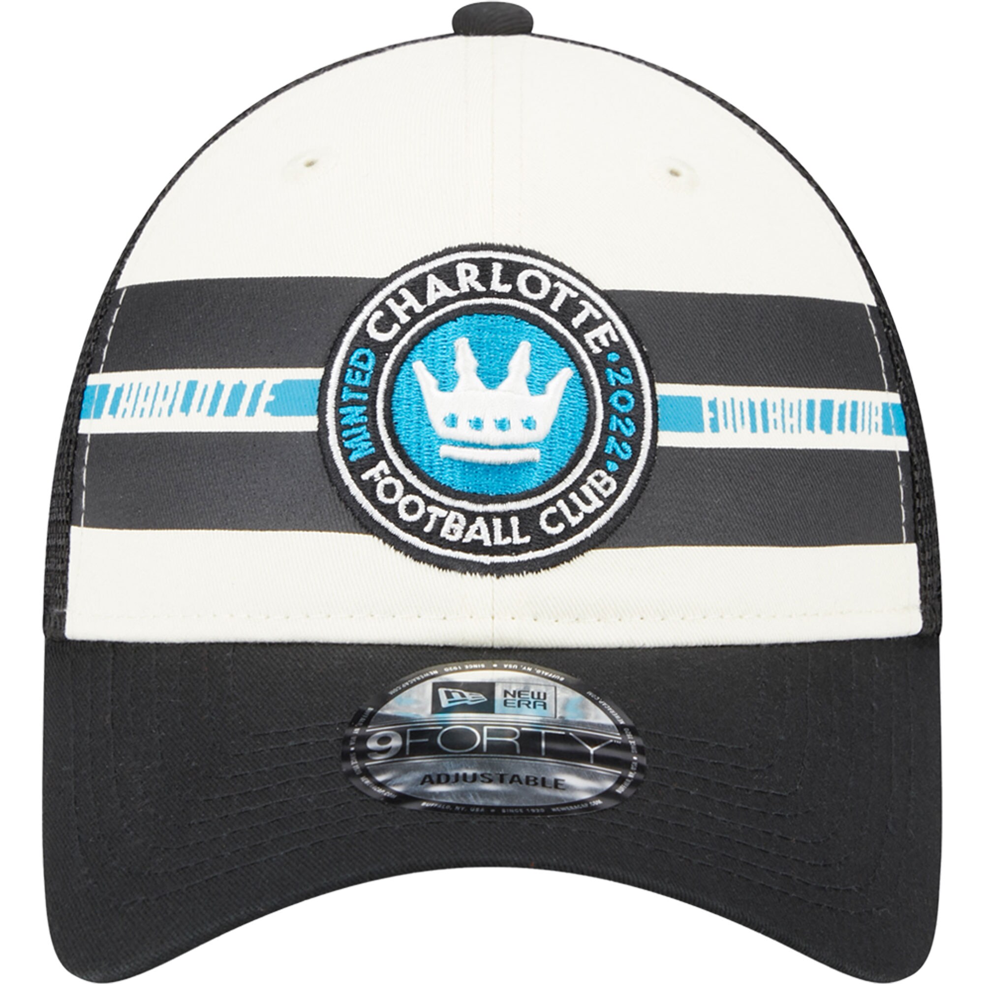 Men’s Charlotte FC New Era White/Black Team Stripes 9FORTY Trucker Snapback Hat