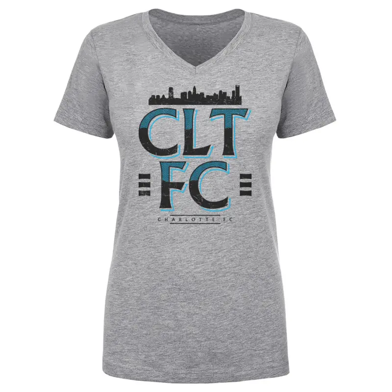 Charlotte FC CLTFC Skyline WHT – Women’s V-Neck T-Shirt