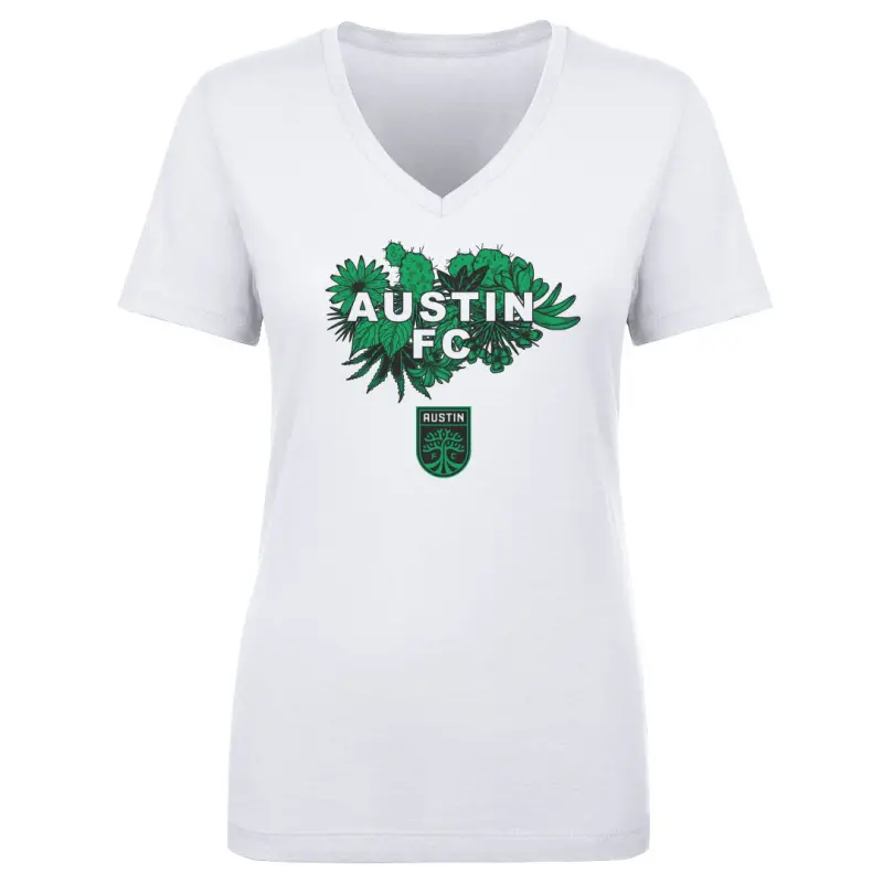 Austin FC Plant Burst WHT – Women’s V-Neck T-Shirt