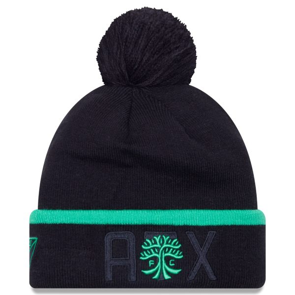 Men’s Austin FC New Era Black Wordmark Kick Off Cuffed Knit Hat with Pom