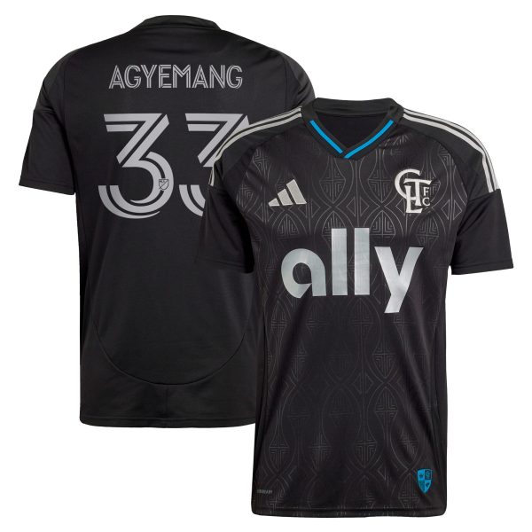 Men’s Charlotte FC Patrick Agyemang adidas Black 2025 Fortress Kit Replica Player Jersey