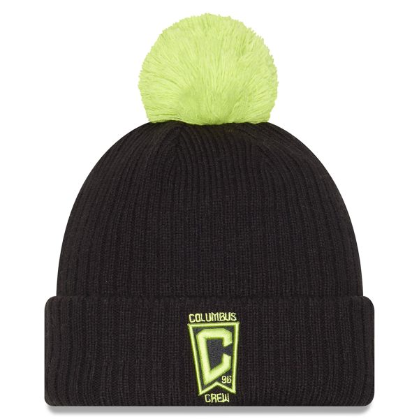 Men’s Columbus Crew New Era Black 2025 Jersey Hook Cuffed Knit Hat with Pom
