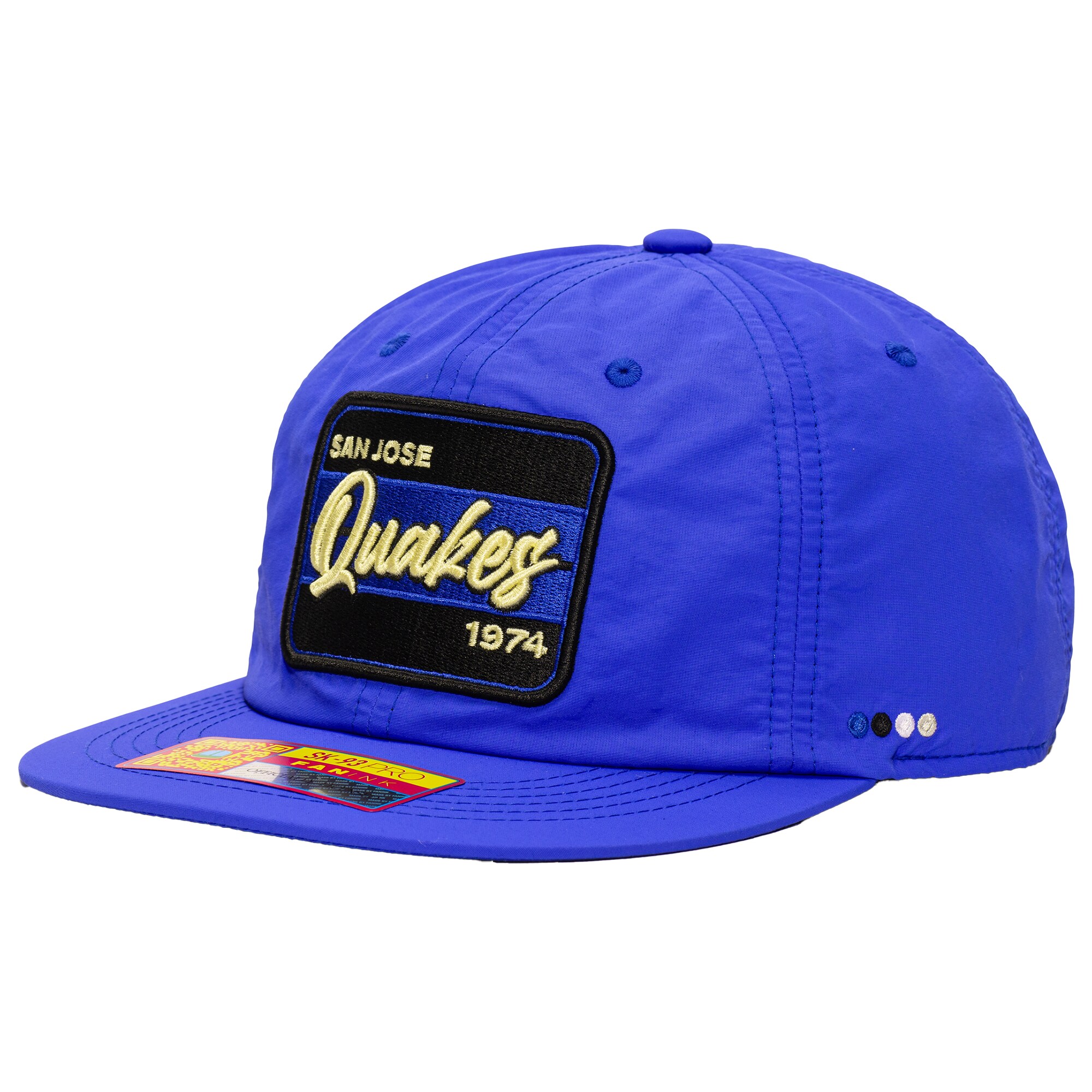 • Show your support for San Jose Earthquakes in bold fashion with this Fiji Adjustable Hat. This San Jose Earthquakes hat features an embroidered fabric applique with the founding year prominently displayed across the front panels, making your love for the club undeniable. With embroidered graphics on the side panels and a classic six-panel design with eyelets, this hat delivers a stylish and comfortable fit for everyday wear.