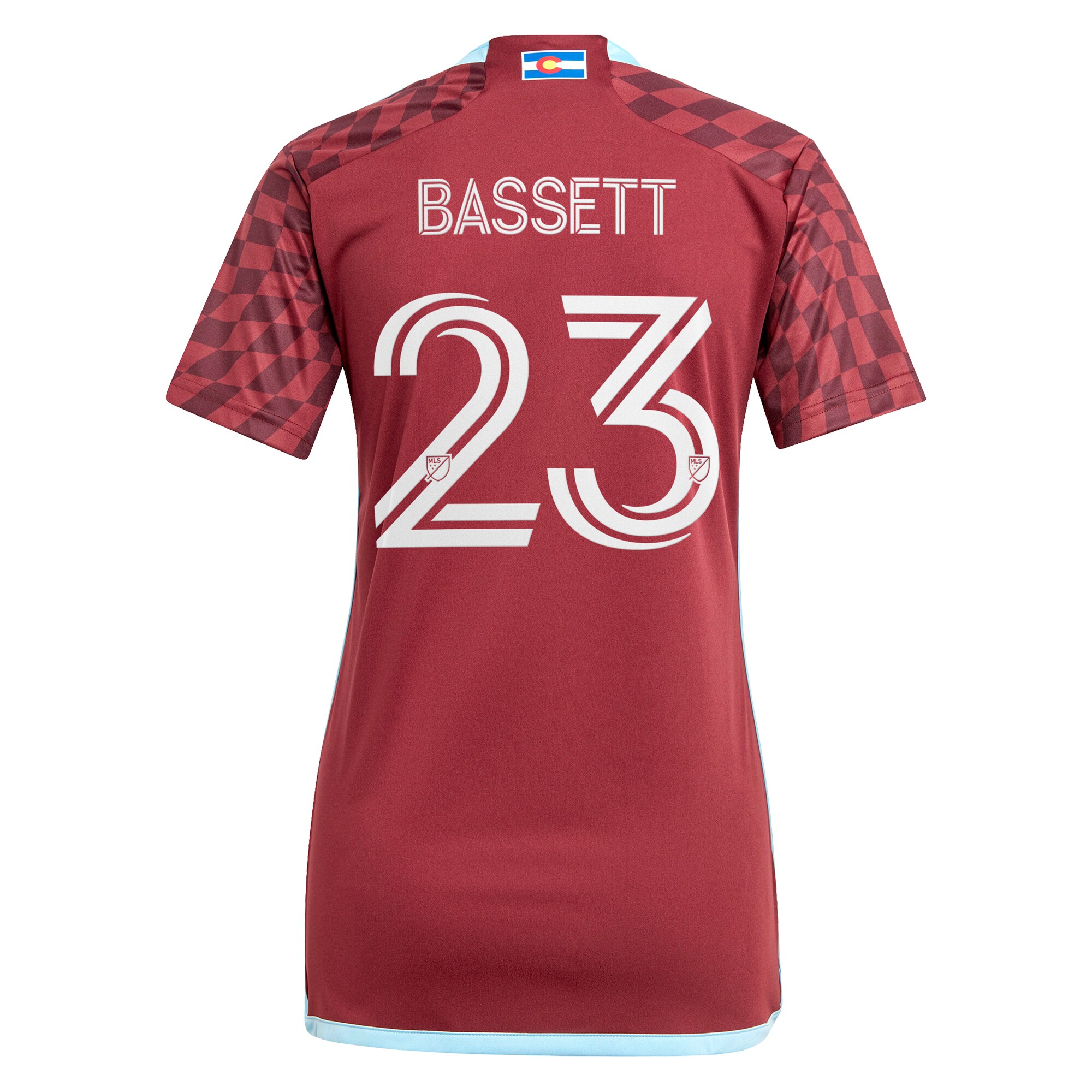 Home / Shop / Colorado Rapids / Women’s Colorado Rapids Cole Bassett adidas Burgundy 2024 One Flag Kit Replica Player Jersey